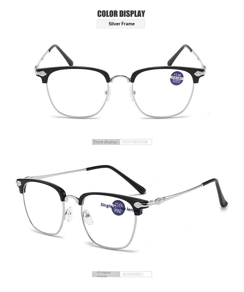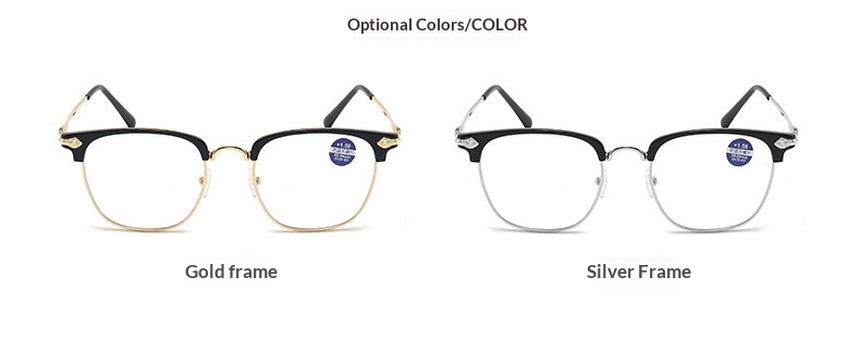 Prescription: Computer glasses (0-degree plano lenses), +100, +150, +200, +250, +300, +350, +400